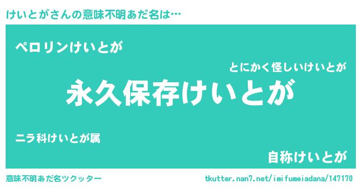 | 胡散臭い通販商品みたいなあだ名 | 『絶対に幸福をもたらす水素水…その名も「けいとが」』 |