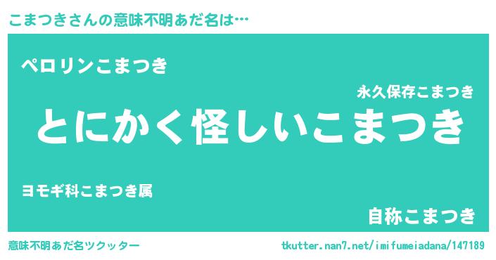 | 男性向けラノベタイトル風あだ名 | 『ダンジョンにこまつきを求めるのは間違っているだろうか』 |