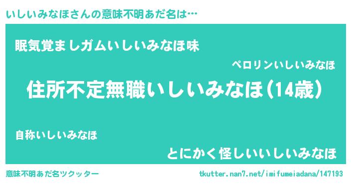 | 男性向けラノベタイトル風あだ名 | 『この素晴らしい世界にいしいみなほを!』 |