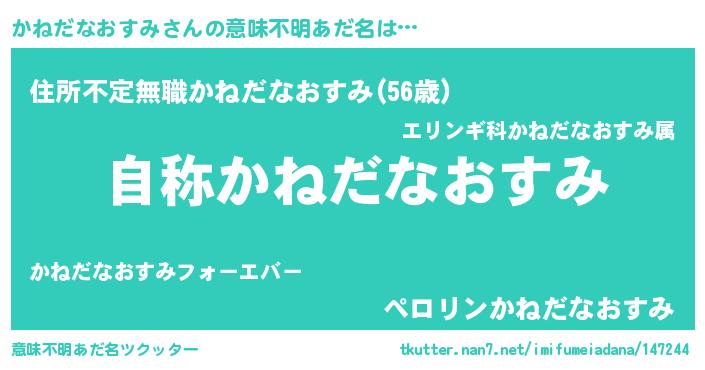 | 肩書あだ名 | 『かねだなおすみ総統』 |