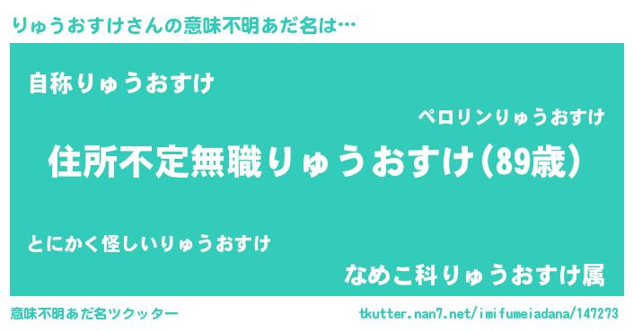 | ヒーロー風カッコイイあだ名 | 『仮面リュダー』『究極戦士リュウオスケ』 |