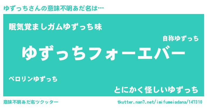 | ヒーロー風カッコイイあだ名 | 『ウルトラゆずっちマン』『黄金騎士ユズ』 |