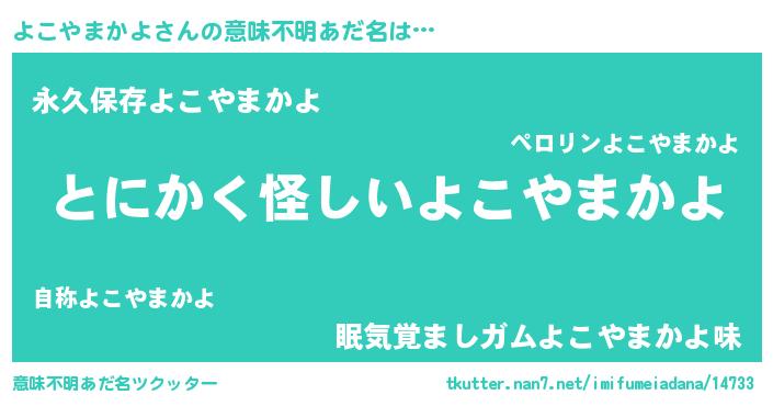 | ポケモン風あだ名 | 『ヒヨコヤマカヨ』『ゼニヨコ』 |