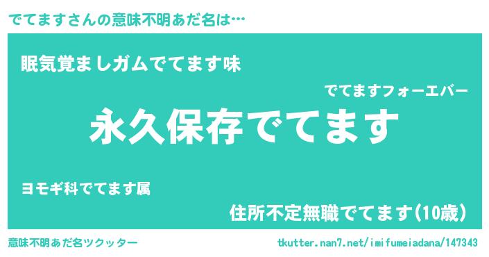 | 男性向けラノベタイトル風あだ名 | 『でてますという概念が存在しない退屈な世界 』 |