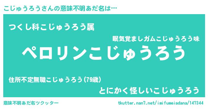 | 男性向けラノベタイトル風あだ名 | 『こじゅうろうの憂鬱』 |