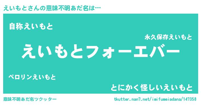 | 胡散臭い通販商品みたいなあだ名 | 『世界が平和になる高級そうな壺…その名も「えいもと」』 |