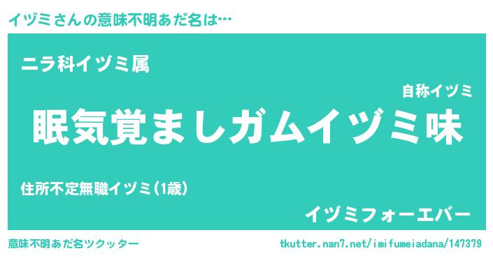 | ヒーロー風カッコイイあだ名 | 『慈愛の使者イヅミ』『究極戦士イヅミ』 |