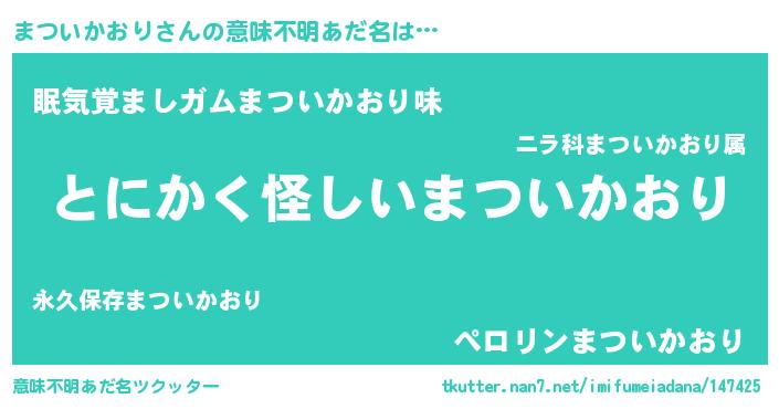 | ポケモン風あだ名 | 『ヒマツイカオリ』『メロマッツ』 |