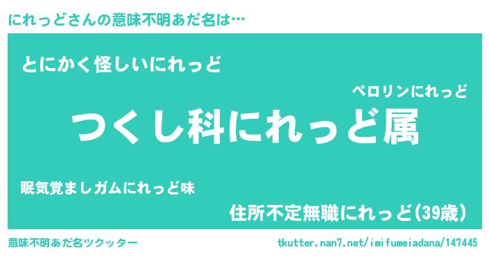 | ピコ太郎風あだ名 | 『ニレ二郎』『ニコ五郎』『ニニ太郎』 |