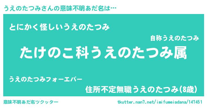 | ポケモン風あだ名 | 『ウエキング』『ヒウエノタツミ』 |