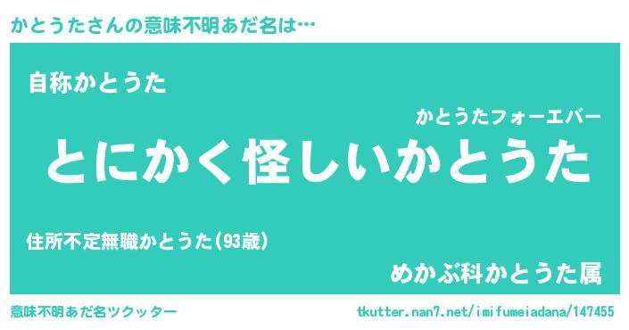 | 欧米人風あだ名 | 『ウサインかとうた』 |