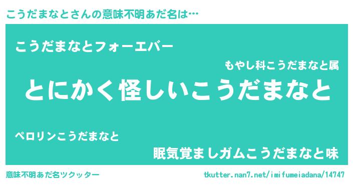 | 欧米人風あだ名 | 『ウサインこうだまなと』 |