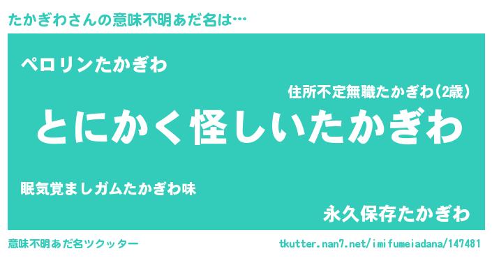 | 女子向けラノベタイトル風あだ名 | 『たかぎわは平凡を望む』 |