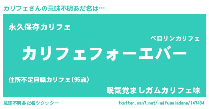 | ヒーロー風カッコイイあだ名 | 『ウルトラカリフェマン』『ネオカリフェ』 |
