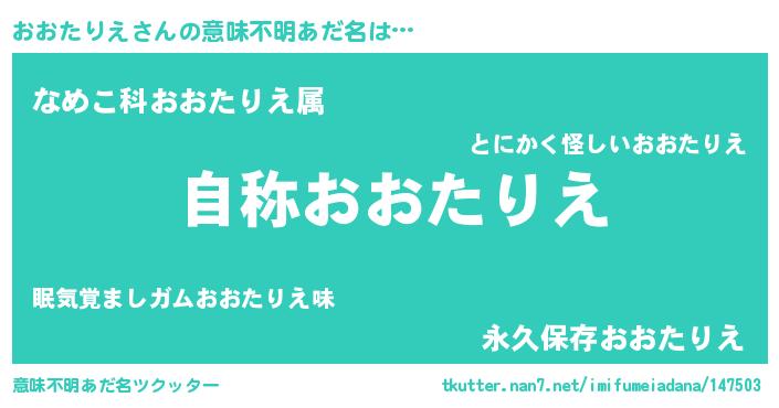 | 肩書あだ名 | 『おおたりえ閣下』『おおたりえ少将』 |