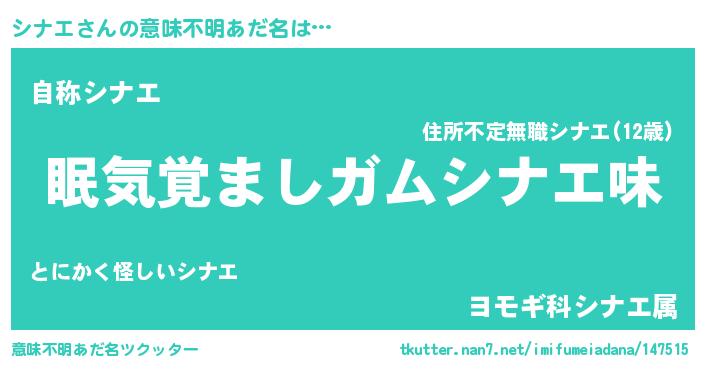 | ヒーロー風カッコイイあだ名 | 『天空の使者シナエ』『最強戦士シナエ』 |