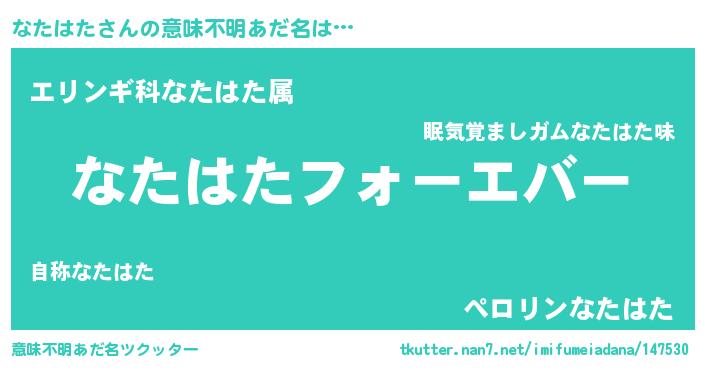 | 2回繰り返すあだ名 | 『ななたた』『よぼよぼ』『なたなた』 |