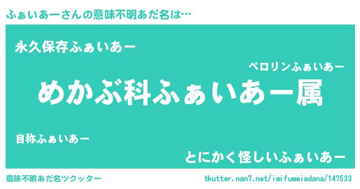 | ヘコむあだ名 | 『ふぁいあー(震え声)』『ふぁお』 |