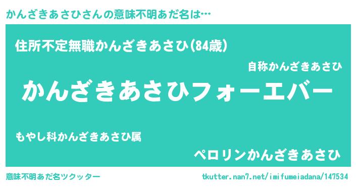 | ファンタジー風あだ名 | 『エターナルカンザキアサヒー』 |