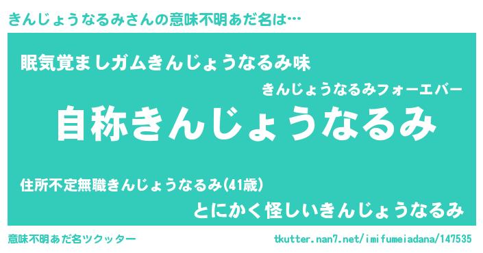 | 男性向けラノベタイトル風あだ名 | 『Re:きんじょうなるみから始める異世界生活』 |