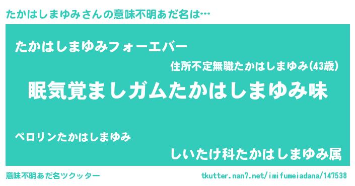 | 男性向けラノベタイトル風あだ名 | 『ノーゲーム・ノータカハシマユミ』 |