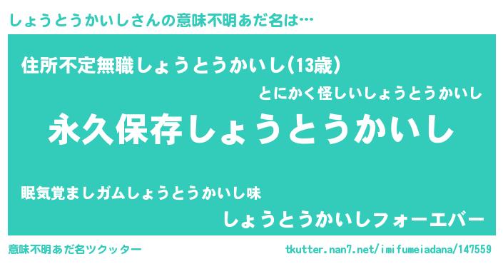 | 胡散臭い通販商品みたいなあだ名 | 『絶対に幸福をもたらす招き猫…その名も「しょうとうかいし」』 |