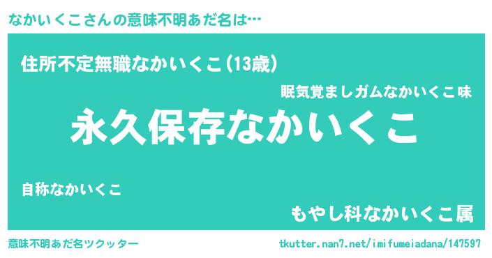 | ヘコむあだ名 | 『なかいくこ(苦笑)』『なかふぇ~』 |