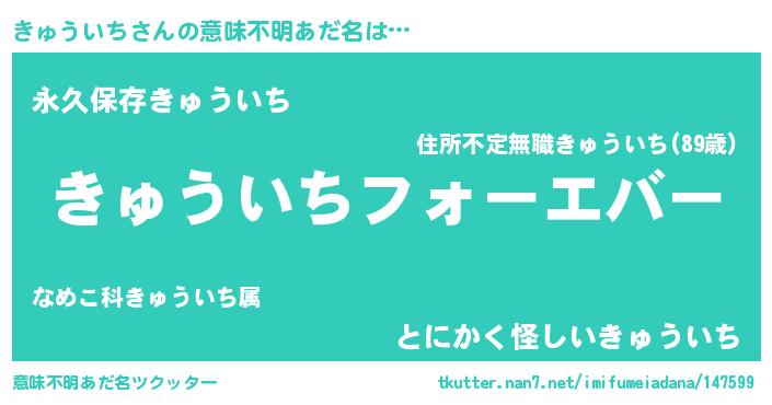 | 胡散臭い通販商品みたいなあだ名 | 『運命の人と巡り会える高級そうな絵画…その名も「きゅういち」』 |