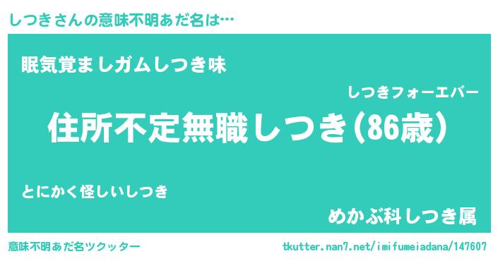 | 胡散臭い通販商品みたいなあだ名 | 『あなたにだけ特別に提供する世界で10本だけ現存している希少なブランデー…その名も「しつき」』 |
