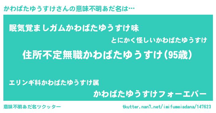 | 欧米人風あだ名 | 『かわばたゆうすけ・ステッグマイヤー』 |