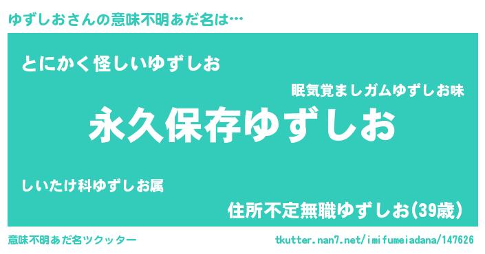 | 男性向けラノベタイトル風あだ名 | 『ゆずしおという概念が存在しない退屈な世界 』 |