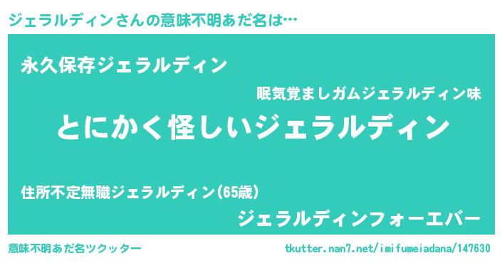 | 男性向けラノベタイトル風あだ名 | 『ジェラルディンの嫁は女の子じゃないと思った?』 |