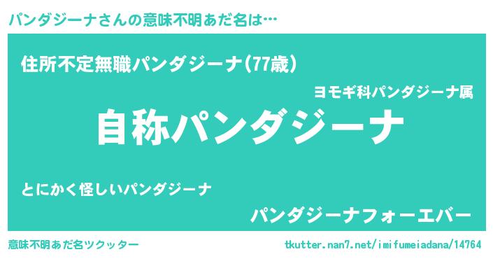 | 男性向けラノベタイトル風あだ名 | 『Re:パンダジーナから始める異世界生活』 |