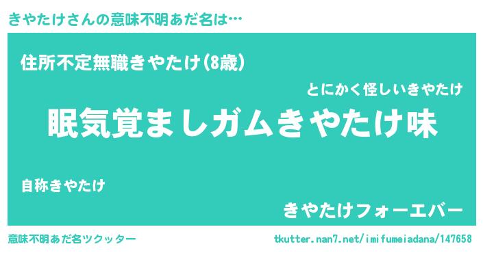 | ヒーロー風カッコイイあだ名 | 『慈愛の使者きやたけ』『仮面キヤダー』 |