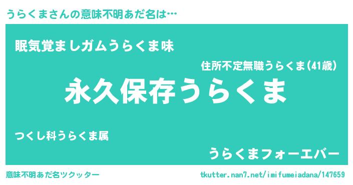 | ヒーロー風カッコイイあだ名 | 『ネオウラクマ』『慈愛の使者うらくま』 |