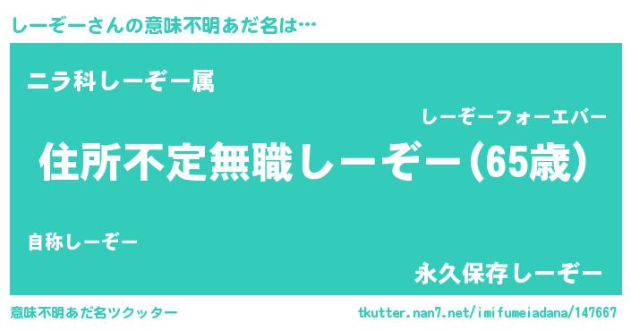 | 男性向けラノベタイトル風あだ名 | 『この素晴らしい世界にしーぞーを!』 |