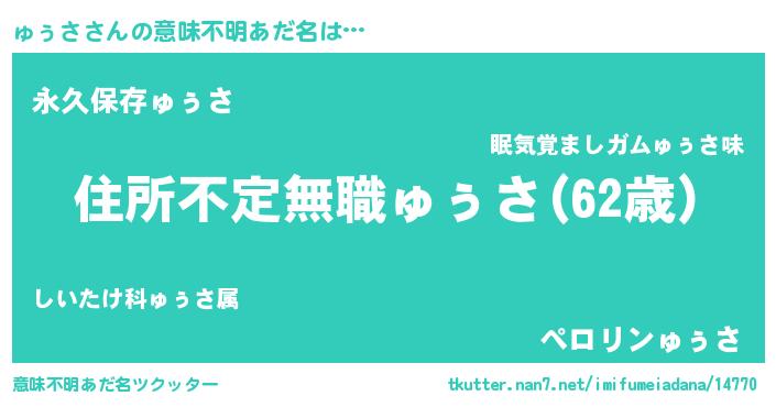 | ヘコむあだ名 | 『ゅぅさ(爆)』『ゅぅにー』 |