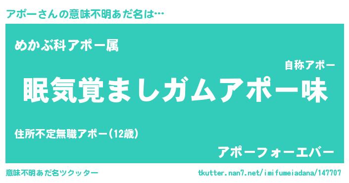 | ヒーロー風カッコイイあだ名 | 『慈愛の使者アポー』『仮面アポダー』 |