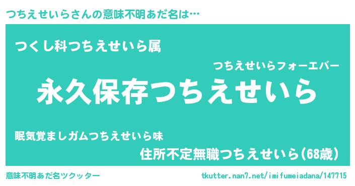 | ヘコむあだ名 | 『つちえせいら(笑)』『酢こんぶ』 |
