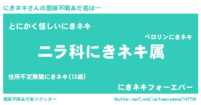 | ポケモン風あだ名 | 『ニキキング』『ヒニキネキ』 |