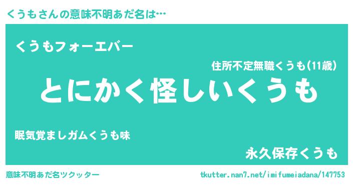 | 女子向けラノベタイトル風あだ名 | 『くうもは平凡を望む』『くうも恋絵巻』 |