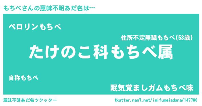 | ヘコむあだ名 | 『もちふぇ~』『もちを』『なまこ酢』 |