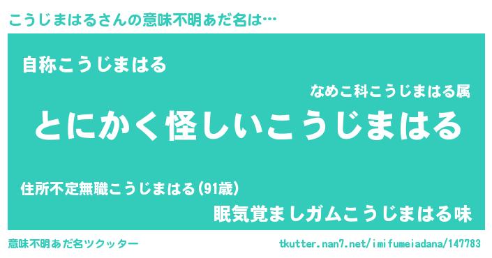 | 欧米人風あだ名 | 『こうじまはる・ステッグマイヤー』 |
