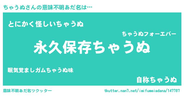 | 女子向けラノベタイトル風あだ名 | 『異世界でカフェちゃうぬを開店しました。』 |
