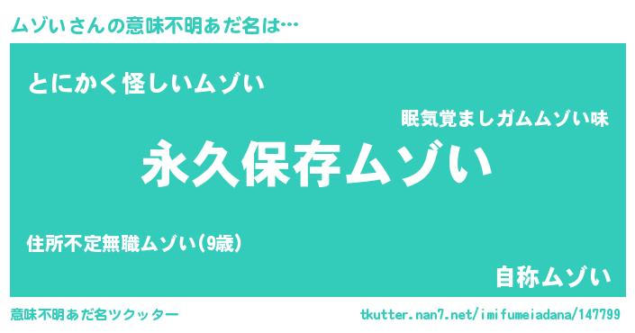 | ヘコむあだ名 | 『ムゾい(笑)』『ムゾお』『牛乳』 |