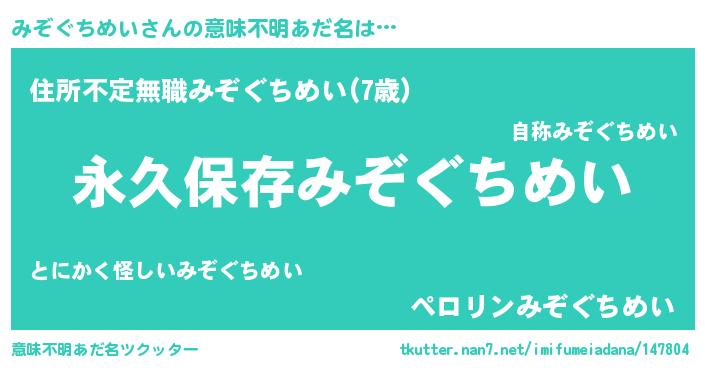| ヘコむあだ名 | 『みぞぐちめい(笑)』『みぞにー』 |