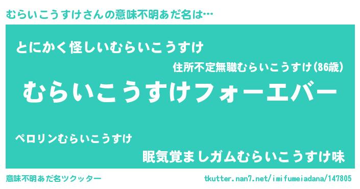 | 男性向けラノベタイトル風あだ名 | 『やはりむらいこうすけの青春ラブコメはまちがっている 』 |