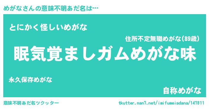 | ヘコむあだ名 | 『めがお』『めがな(苦笑)』 |