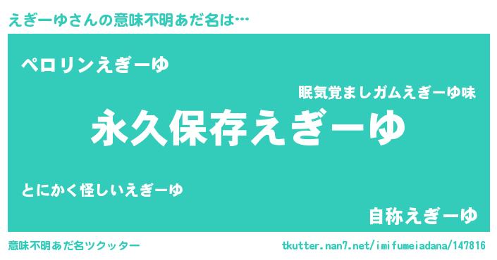 | 男性向けラノベタイトル風あだ名 | 『えぎーゆという概念が存在しない退屈な世界 』 |
