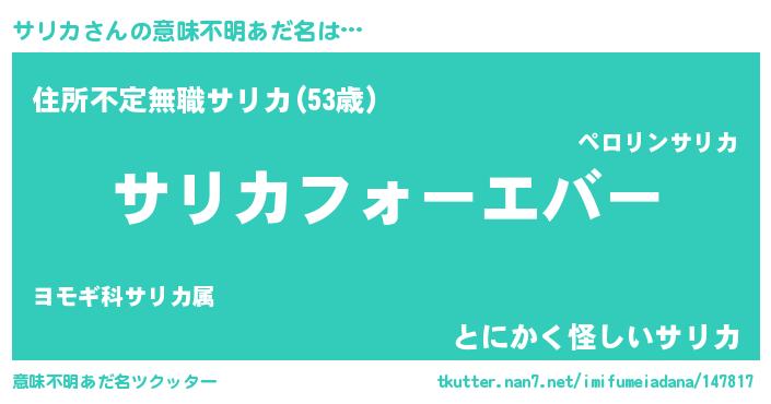 | 欧米人風あだ名 | 『サリカ・ステッグマイヤー』 |